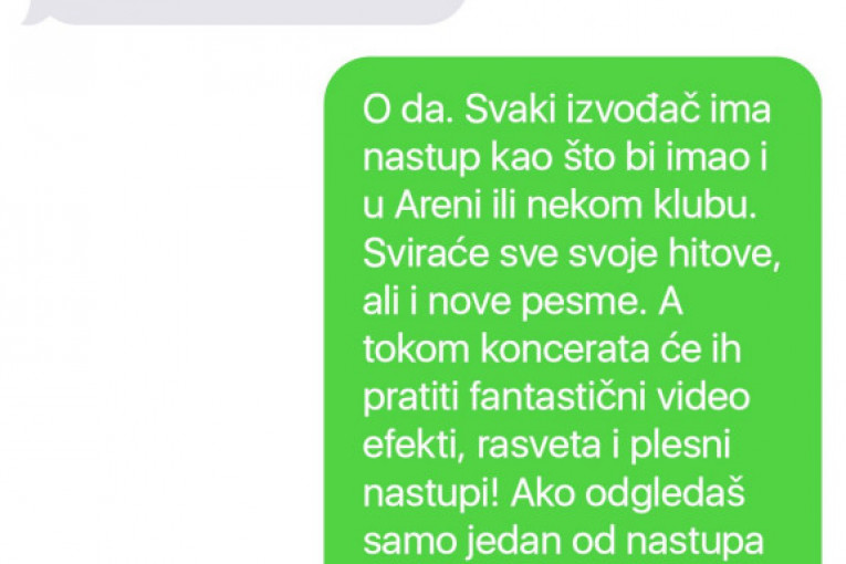 O da. Svaki izvođač ima nastup kao što bi imao i u Areni ili nekom klubu. Sviraće sve svoje hitove, ali i nove pesme. A tokom koncerata će ih pratiti fantastični video efekti, rasveta i plesni nastupi! Ako odgledaš samo jedan od nastupa imaćeš potpun užitak, a sada zamisli da ih svako veče ima 15.