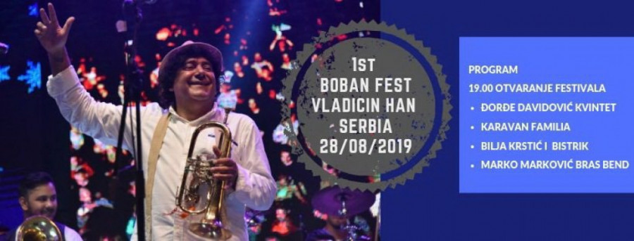 BOBAN FEST - VLADIČIN HAN 28.08.2019. Organizator festivala: udruženje „Čuvari trube Boban Marković”- Pokrovitelj: Opština Vladičin Han.