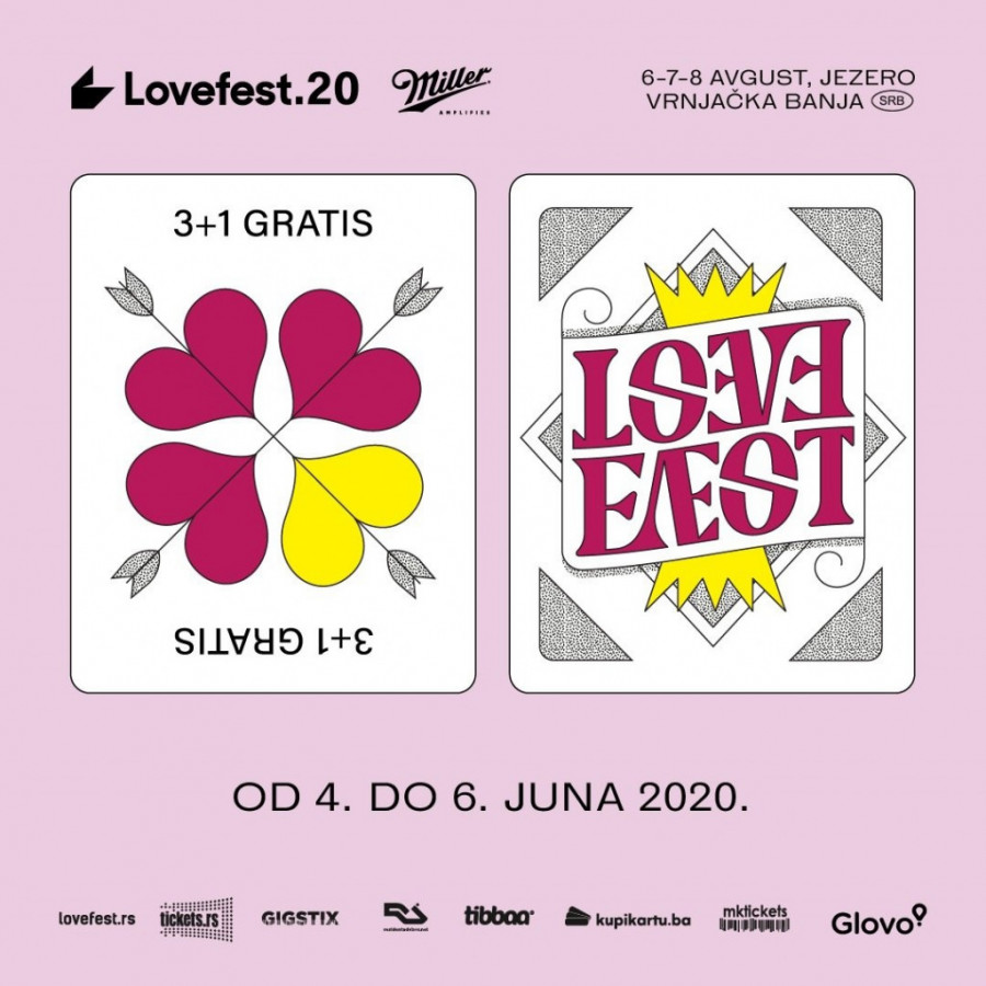 Posle duge neizvesnosti o formatu, kao i dobrih vesti da će Lovefest biti održan u nepromenjenom datumu, na red je došla i najava prvih imena koja će fanovi festivala ljubavi imati prilike da čuju od 6. do 8. avgusta u Vrnjačkoj Banji. Uz to, za one najbrže, u istom danu biće omogućena još jedna limitirana serija od samo 1.000 ulaznica, kao i akcija gde se uz tri kupljenje, četvrta dobija gratis.