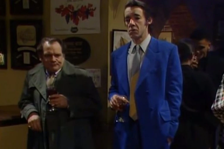 Foto: youtube.com/BBC Comedy GreatsRadi se o sceni iz epizode "Yuppy Love" u kojoj se Del (Dejvid Džejson) i Triger (Rodžer Lojd Pek) dive dvema devojkama, a u pokušaju da ih osvoji svojim kul pristupom, Del ne primećuje da je neko podigao dasku na šanku iza njega i, dok pokušava da se nasloni na njega, propada u prazno.