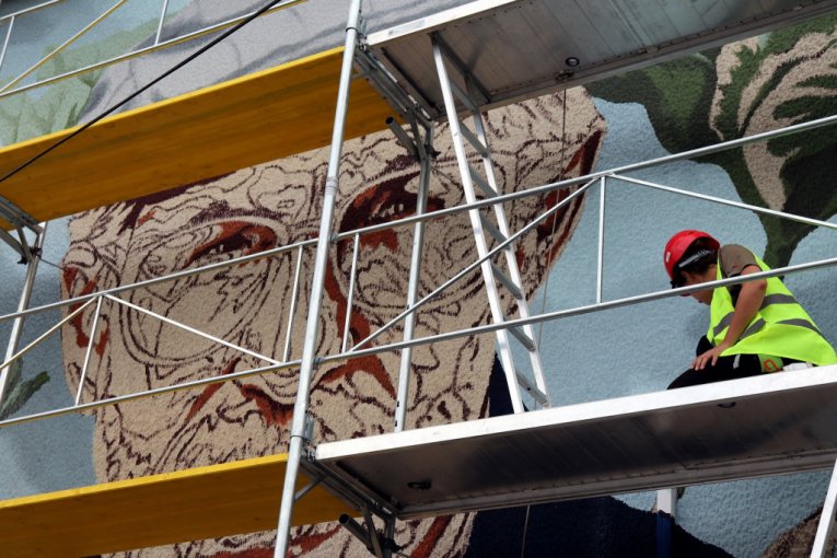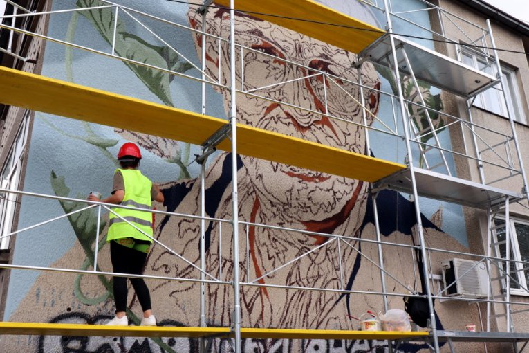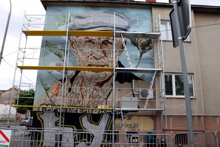 (FOTO) Napreduju radovi na muralu jednog od najznačajnijih srpskih pisaca 20. veka Dragoslava Mihailovića