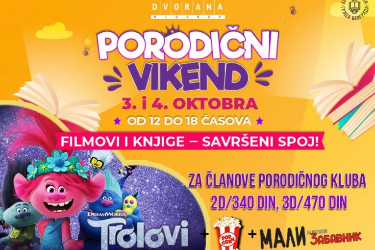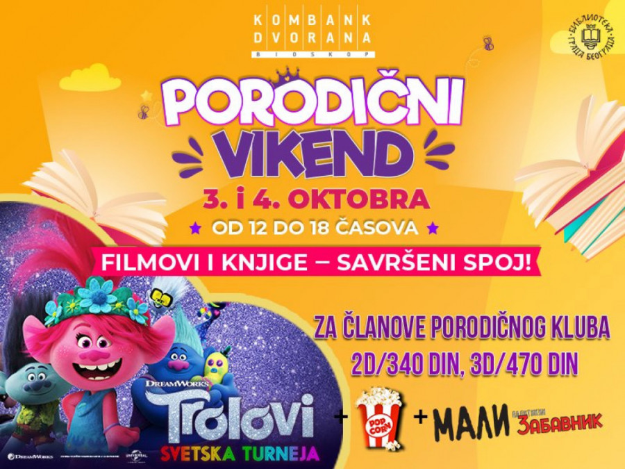 Foto: Promo fotoPosle šest meseci pauze u radu bioskopa nastale usled pandemijske krize, klinci i klinceze će imati prilike da prvi put od ponovnog otvaranja bioskopskih sala, sa svojim roditeljima ili u društvu svoje "ekipe" uživaju u tradicionalnom Porodičnom vikendu od 12 do 18h pod sloganom FILMOVI I KNJIGE - SAVRŠEN SPOJ.