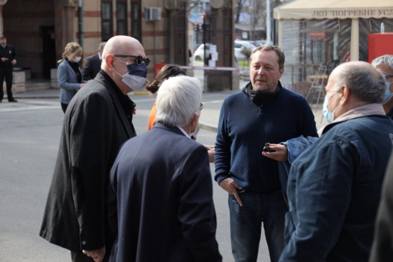 Kolege iz JDP i drugih pozorišta došle su na njegov ispraćaj. Nadi Velisavljević, ženi pokojnog glumca, svi pre početka opela, žele da izjave saučešće.