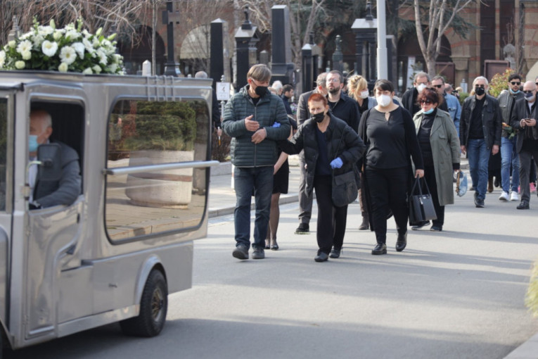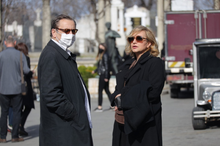 Branka Petrić skrhana bolom stigla je na Novo groblje zajedno sa kolegom Tihomirom Stanićem, a potom i Milan Marić, Ljubiša Ristić, Tanja Mandić Rigonat i mnogi drugi.