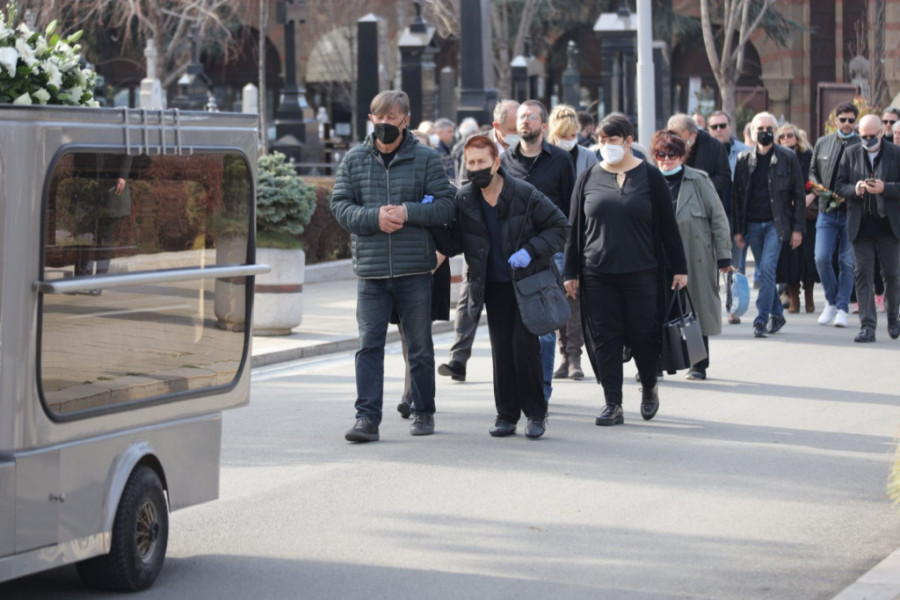 Branka Petrić skrhana bolom stigla je na Novo groblje zajedno sa kolegom Tihomirom Stanićem, a potom i Milan Marić, Ljubiša Ristić, Tanja Mandić Rigonat i mnogi drugi.