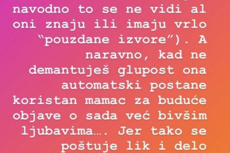 Naime, kada je videla tekst u srpskom tabloidu, ona je na svom Instagram "storiju", okačila fotografiju pomenutog teksta, uz poruku: