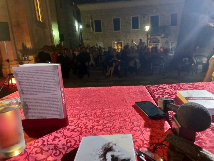 Tokom ovog meseca, autor “Derete” je prethodno predstavio svoj roman „Ostaci sveta“ na Trgu pjesnika u Budvi i u gradskoj kotorskoj biblioteci. I pored vrlo uspešnog budvanskog nastupa, hercegnovski je bio najposećeniji ne samo u okviru Marojevićeve turneje po Crnogorskom primorju nego i što se tiče svih desetak promocija romana „Ostaci sveta“, pa i u odnosu na dve beogradske. Pred oko 75 gledalaca, na prepunom „Trgu od ćirilice“, osim autora nastupila je i novinarka Danijela Đonović kao moderator. “Deseto veče manifestacije ‘Trg od Ćirilice’”, piše za portal “Svetigore” Jovica Vukasović “pod vedrim nebom na trgu Herceg Šćepana, hercegnovsku publiku nije ostavilo ravnodušnom. Ljubiteljima pisane riječi predstavljen je roman ‘Ostaci sveta’ autora Igora Marojevića (…) Ono što ovaj roman izdvaja među romanima je to, da se autor osmjelio da po prvi put napiše roman koji govori o Jasenovcu, stradanju i patnji zatvorenika, ali i njihovih dželata (…) Autor je publici pročitao neke odlomke iz romana i time ih zainteresovao da nastave da tragaju za odgovorima. Ono što ovaj roman čini posebnim, po rečima kritike jeste to, što autor njime uvodi jedan novi žanr u srpskoj književnosti i time obogaćuje našu književnost, a kruna toga, svakako jesu nagrade kojih je u prethodnih godinu dana bilo mnogo, čiji je pečat ‘Nagrada Meša Selimović’. Nakon promocije knjige, publika je imala mogućnost da porazgovara sa autorom, kao i da dobije potpisan primjer ovog romana.”