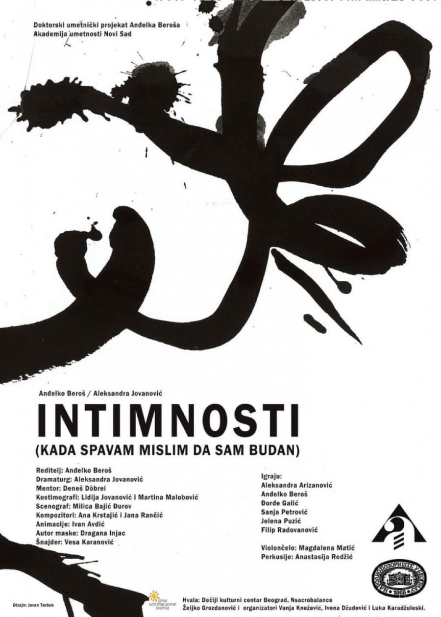 Neobična fuzija fizičkog i dramskog teatra pod nazivom "Intimnosti" (Kada spavam mislim da sam budan) nastala je kao doktorski umetnički projekat Anđelka Beroša na Akademiji umetnosti u Novom Sadu.