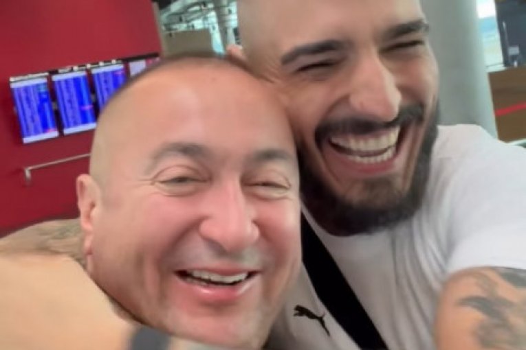 Njih dvojica su se pozdravili i izgrlili, a onda je Đani počeo po aerodromu da podiže gornji deo i pokazuje stomak, zbog čega su svi pristuni ostali šokirani.