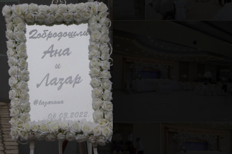 A u restoranu je sve spremno za zvanice, na samom ulazu stoji poruka "Dobrodošli Ana i Lazar" kao i današnji datum na koji su se zakleli na večnu ljubav.