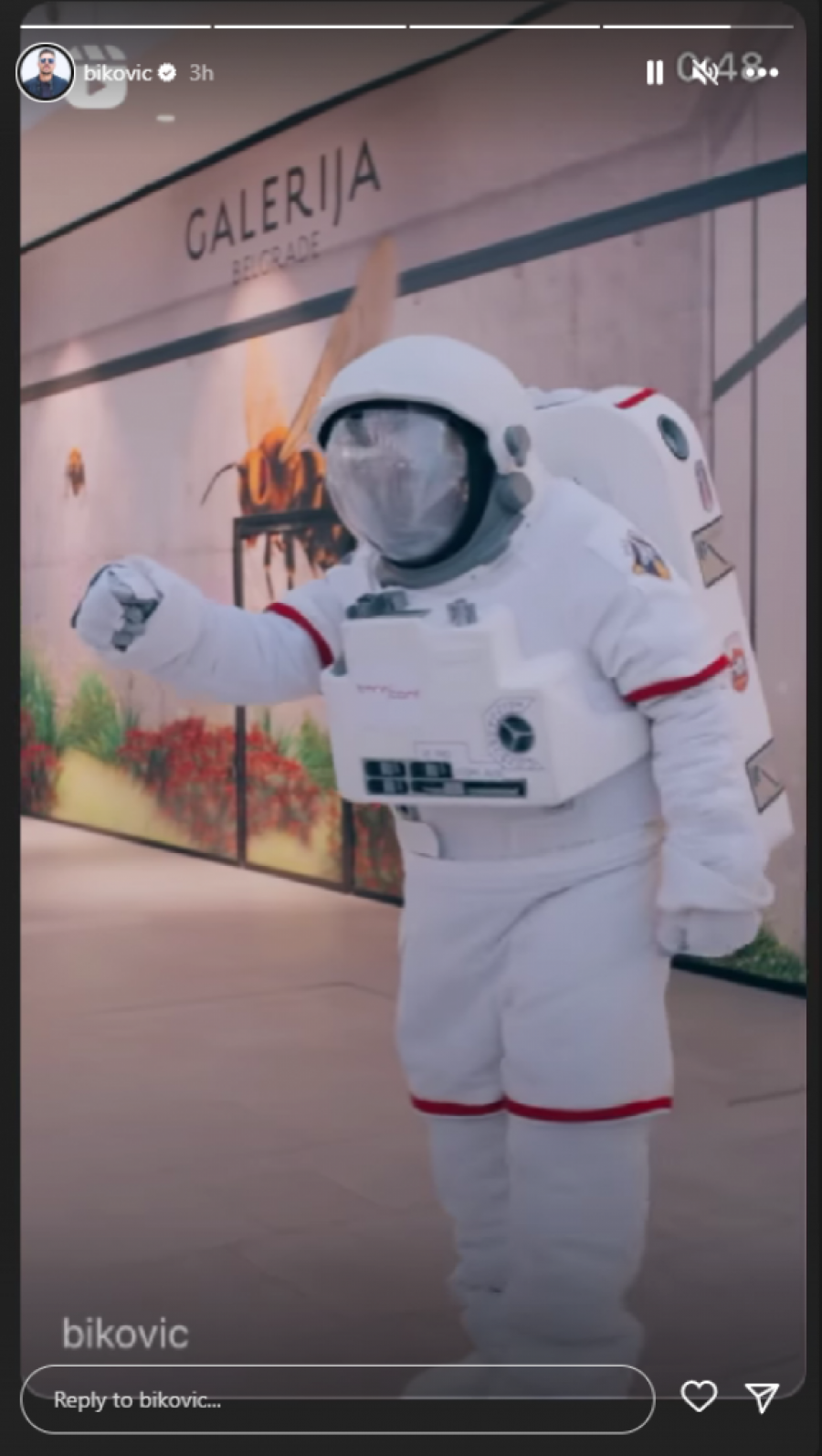 Naime, Biković je prošetao jednim prestoničkim tržnim centrom, kao da je "pao sa Marsa", maskiran u zaštitno odelo kosmonauta, a kako je na glavi imao kacigu, niko nije mogao da ga prepozna od prolaznika.
