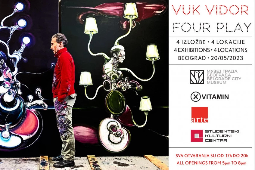 “Four Play” su četiri izložbe Vuka Vidora koje će se sve održati u Beogradu, a počinju u subotu 20. maja.