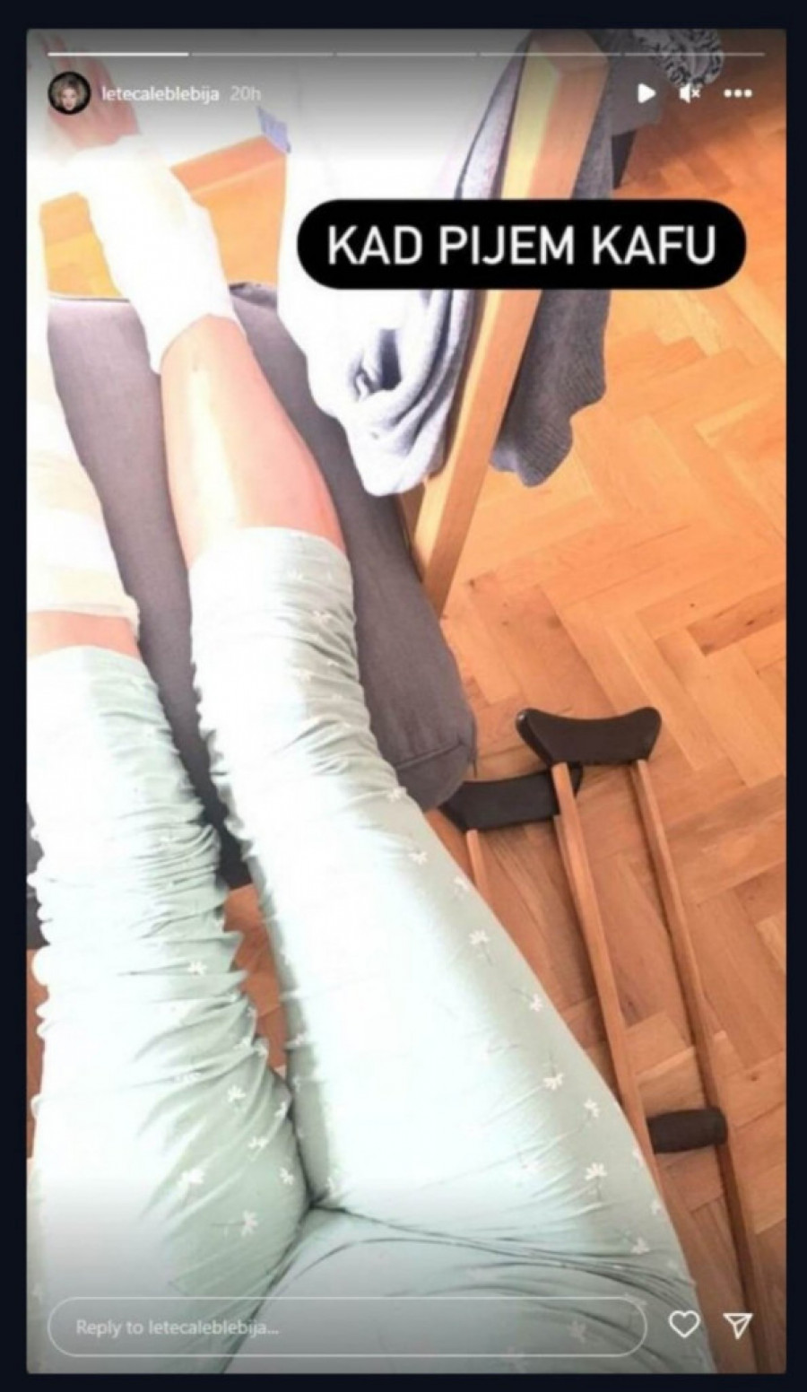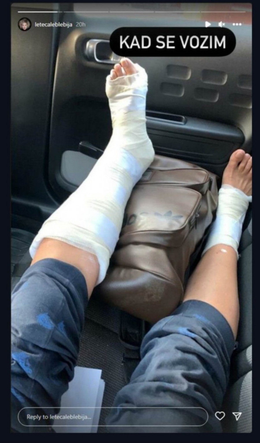 Glumica Aleksandra Janković nedavno je zabrinula javnost kada je na društvenoj mreži Instagram podelila fotografija na kojima se vidi da su joj obe noge žestoko povređene, te je usled povreda završila u gipsu do kolena i zavojima u predelu skočnog zgloba.
