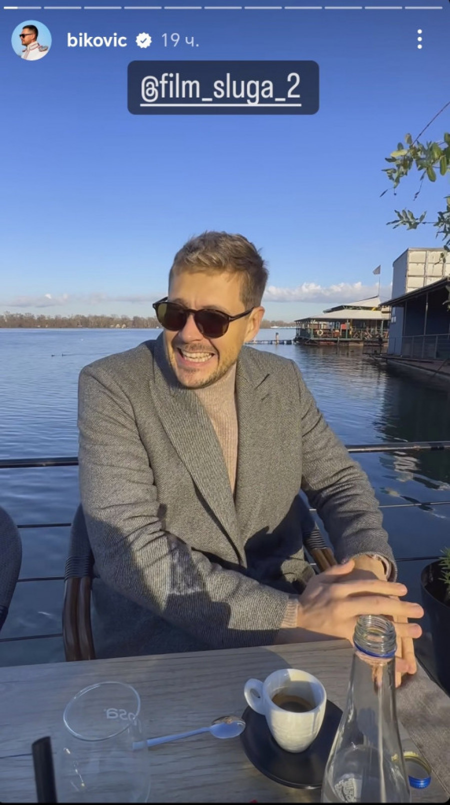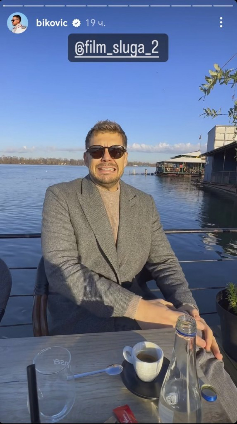 Biković je iskoristio sunčan zimski dan da snimi video u kojem poziva gledaoce da pogledaju nastavak "Sluge" na velikom platnu i tom prilikom je doživeo peh! Udario je nogom o sto, a koliko ga je to zabolelo najbolje se vidi na njegovom licu.
