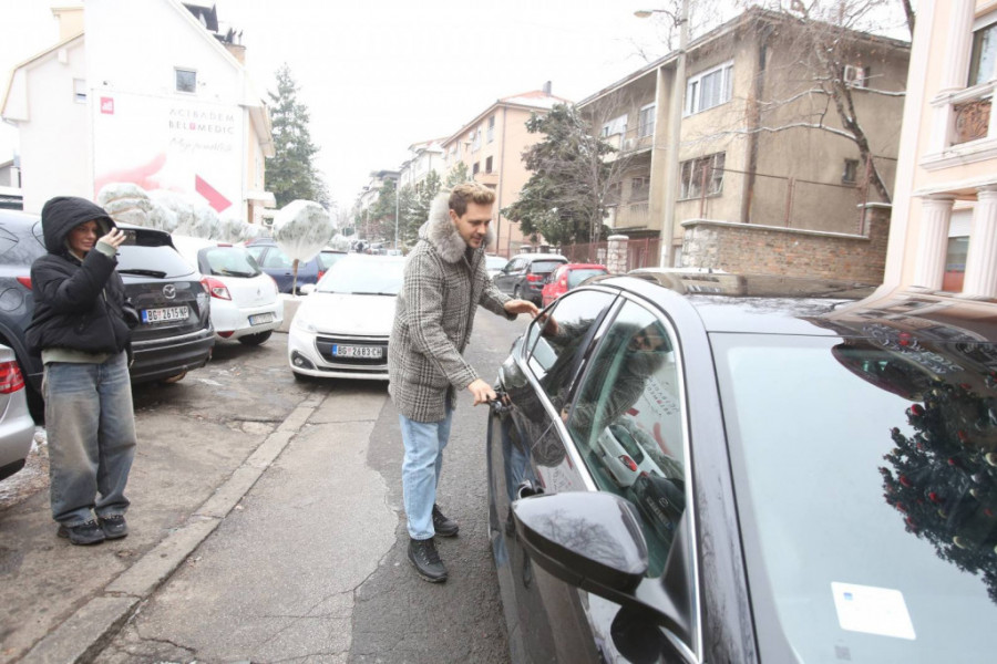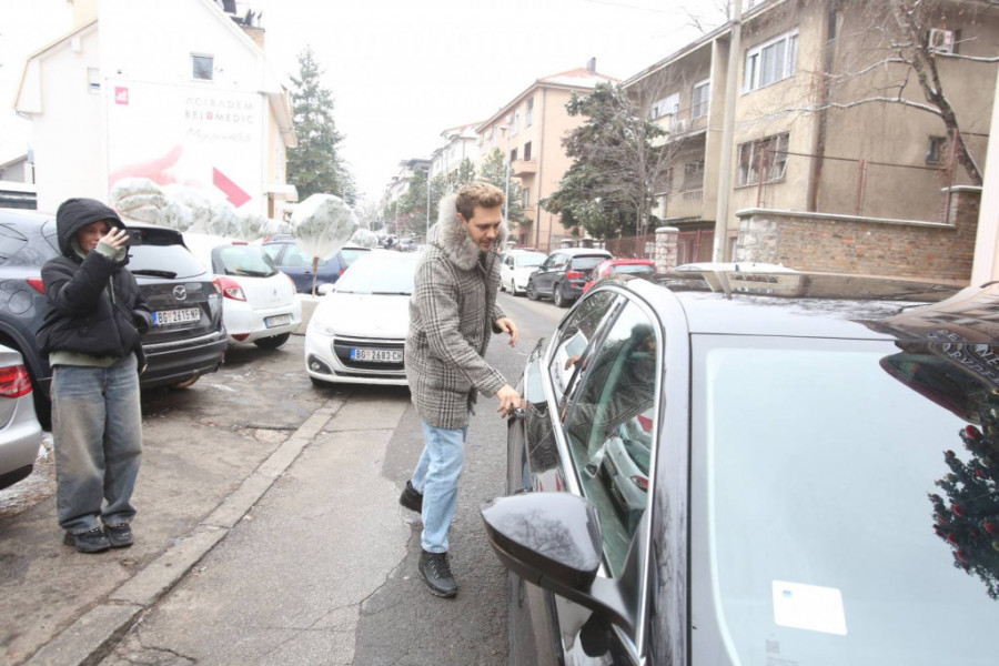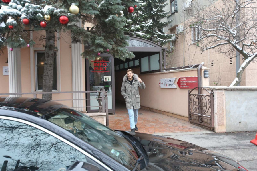 Miloš Biković je došao u porodilište po sina i izabranicu Ivanu.