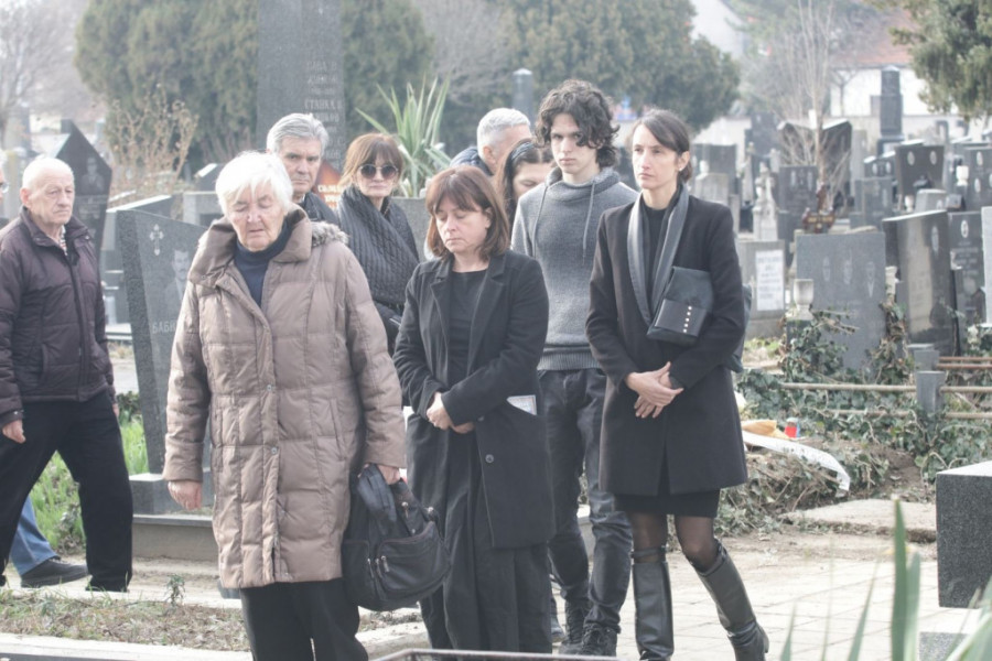 Na sahrani su se pojavile i snajka, ćerka i unuci, koji nisu krili tugu i bol na licima, a u jednom trenutku je došla i Mina, prva supruga pokojnog Nebojše Glogovca.