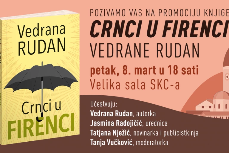 Vedrana Rudan dolazi u Beograd da sa čitaocima u Srbiji proslavi Osmi mart na promociji knjige „Crnci u Firenci", koja će se održati u Velikoj sala SKC-a, u petak 8. marta od 18 sati.