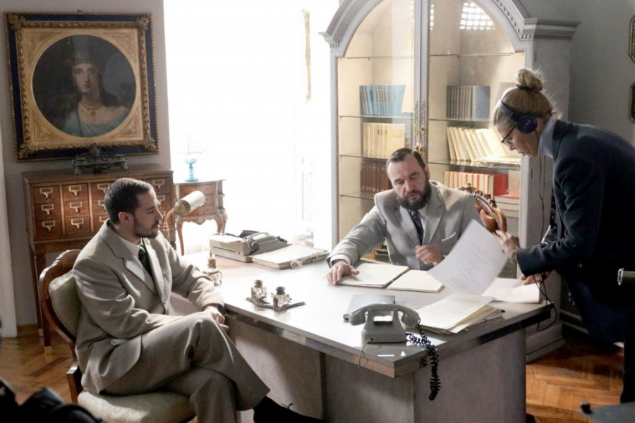 Dok ulazimo u stan, koji je za potrebe snimanja pretvoren u kancelariju Veljka Guberine prvi koga zatičemo je, ko drugi nego Nenad Jezdić, glumac koji tumači lik čuvenog advokata. Zatičemo ga usred scene s mlađim kolegom Markom Vasiljevićem, a za to vreme veliko ime iz sveta advokature Branislav Tapušković posmatra glumce kako pred kamerama postaju ono što je on celog života.