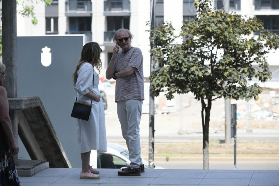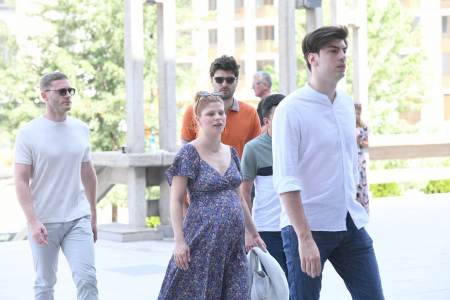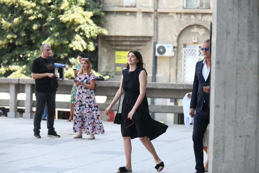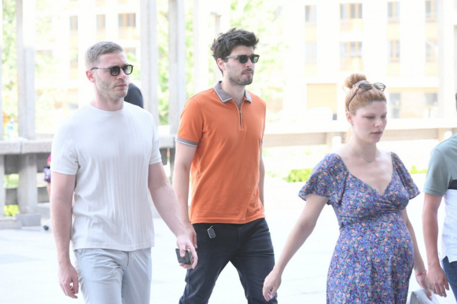 Vanja Nenadić u pratnji partnera ispred Višeg suda u Beogradu.