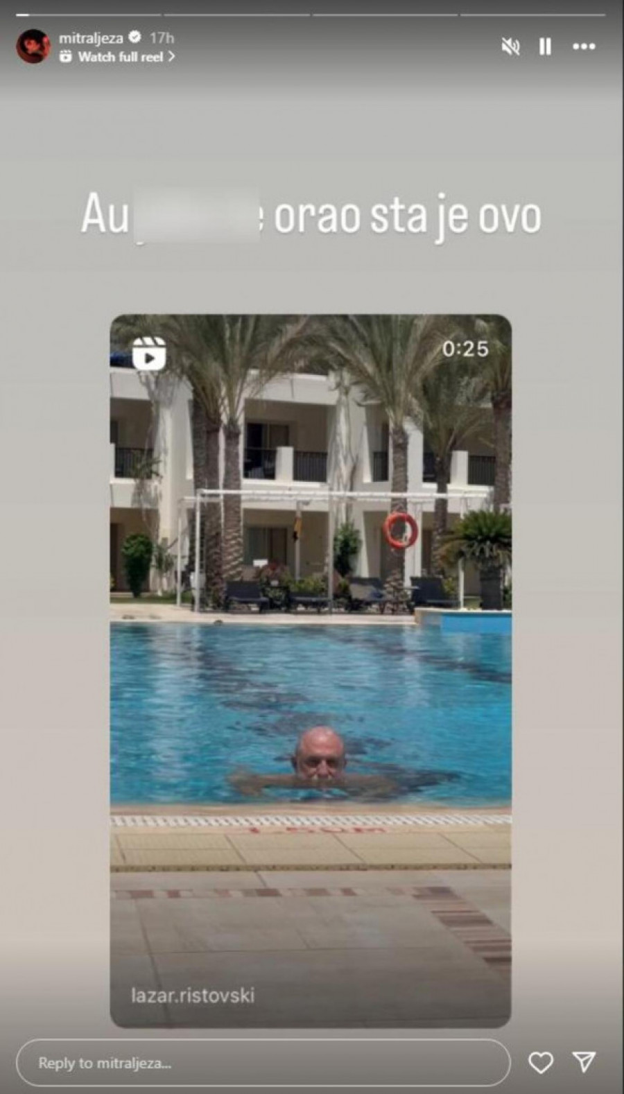Snimak Lazara Ristovskog (71) kako izlazi iz bazena poput zveri dok se u pozadini čuje muzika iz kultnog filma o Džejmsu Bondu "zapalio" je mreže. Lavinu komentara izazvao je glumac koji se skinuo na letovanju, gde uživa sa svojom 39 godina mlađom devojkom Anicom Lazić, a na ovo izdanje Ristovskog nije ostala nema ni glumica Hana Selimović.