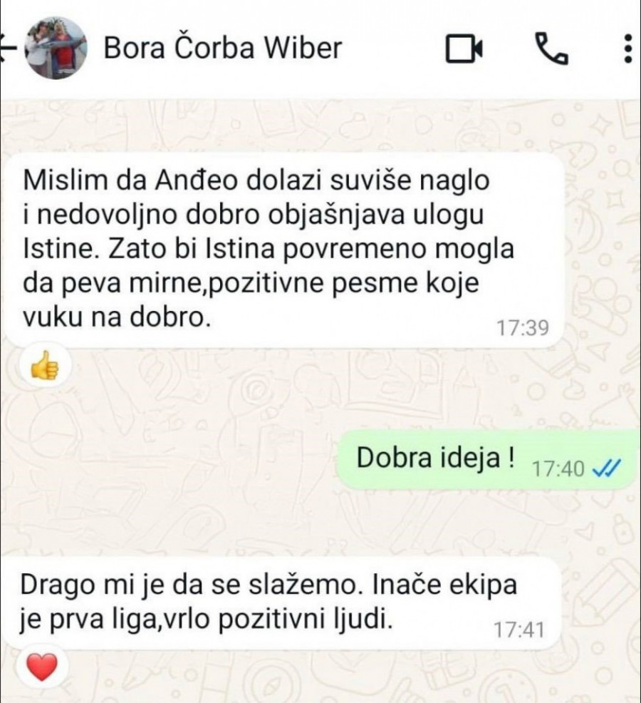 - Voleo bih da Istina, koja “glumi ono što joj ime kaže” peva mirne, pozitivne pesme koje afirmišu dobro - (Bora Djordjević u poslednjim danima svog života koje je posvetio pripremi mjuzikla, razmennjujući ideje sa rediteljem)