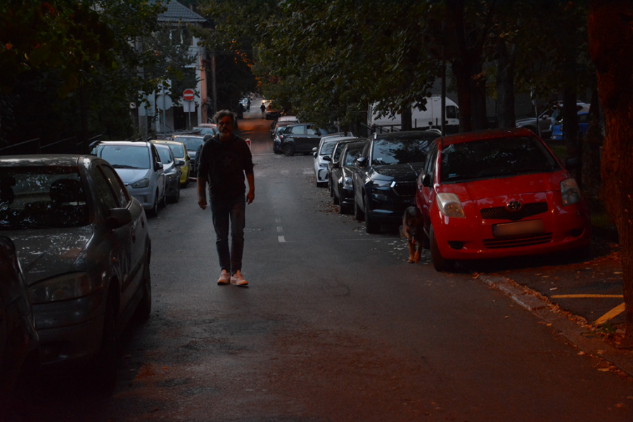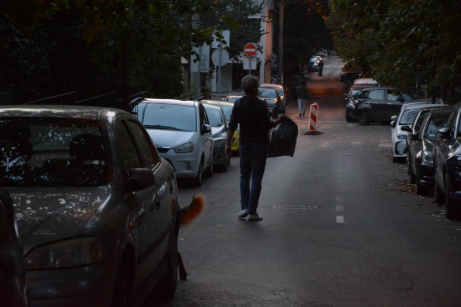 Nedugo nakon što se vratio u stan, Sergej je ponovo izašao iz zgrade, ovog puta noseći džak prepun smeća, koje je krenuo da baci. I ovoga puta, bio je u društvu svog kućnog ljubimca. On se, po povratku u stan, okrenuo pristunim foto-repoterima i krenuo sa dobacivanjem.