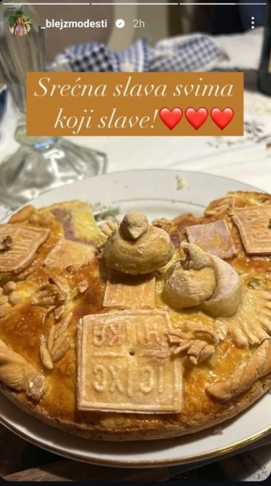 Ovo okupljanje zabeležila je njihova ćerka Anđela, koja je na društvenim mrežama podelila fotografiju slavskog kolača.
