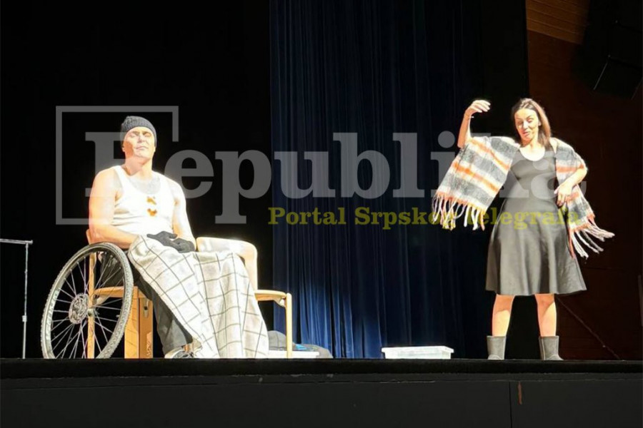 Njih dvoje su se za potrebe pozorišnog komada u nekoliko navrata grlili na bini, a publika u velikom broju ih je na kraju predstave nagradila aplauzom.