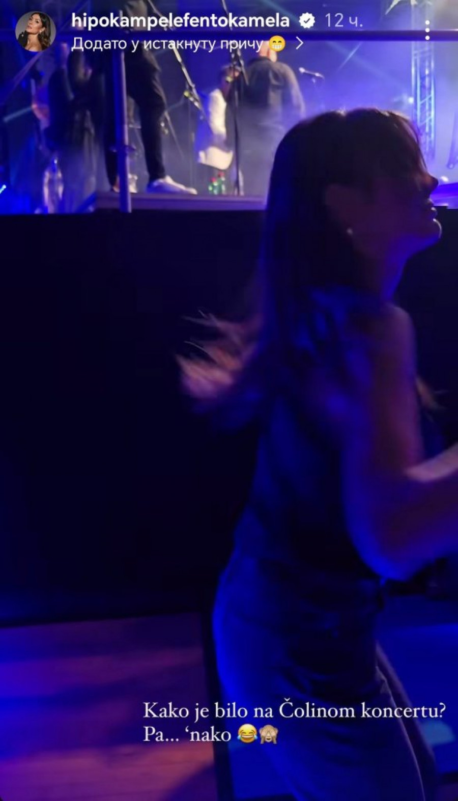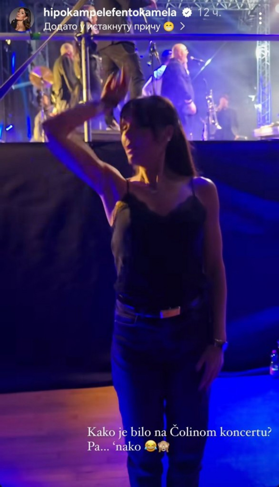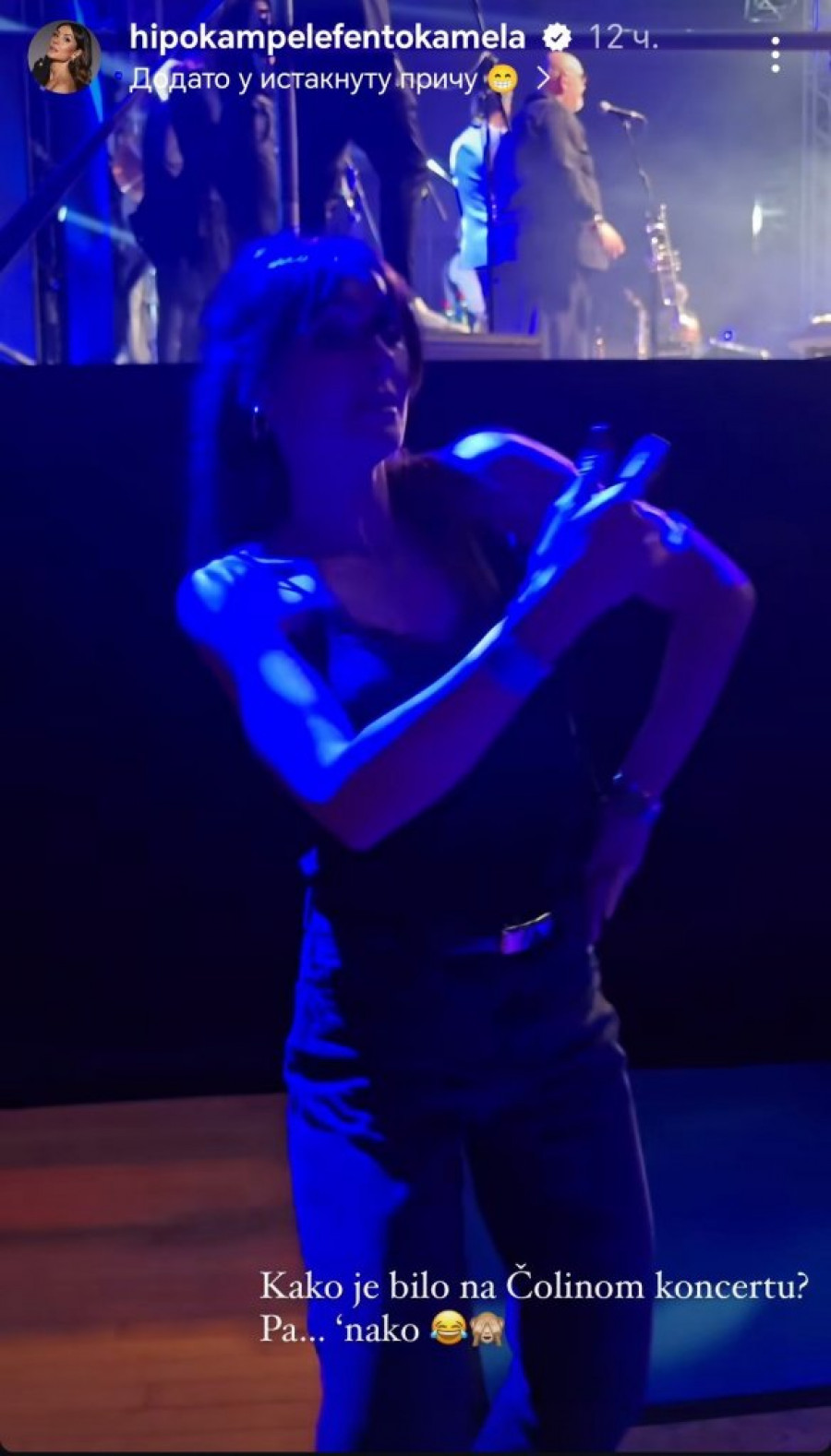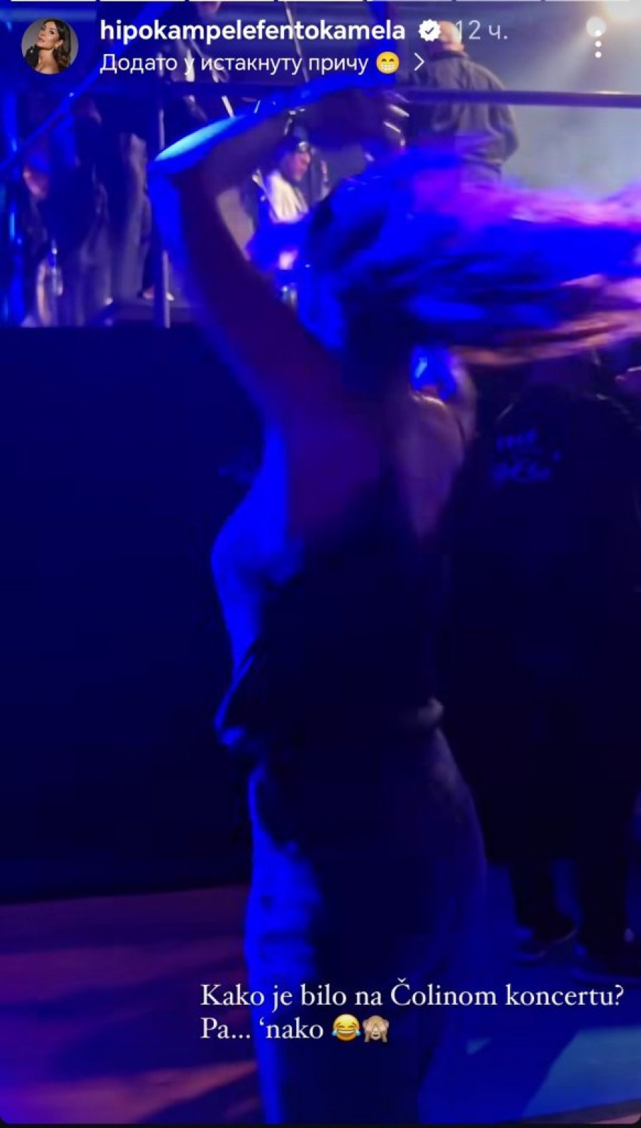 Na njemu mlada glumica meša kukovima i uvija se uz Čolin hit. Dragana nije skidala osmeh sa lica, na sebi je imala majicu na bretele i uske farmerke, zbog čega joj je verujemo bilo udobno da igra. Uživala je tik ispred bine uz Čoline najveće hitove.