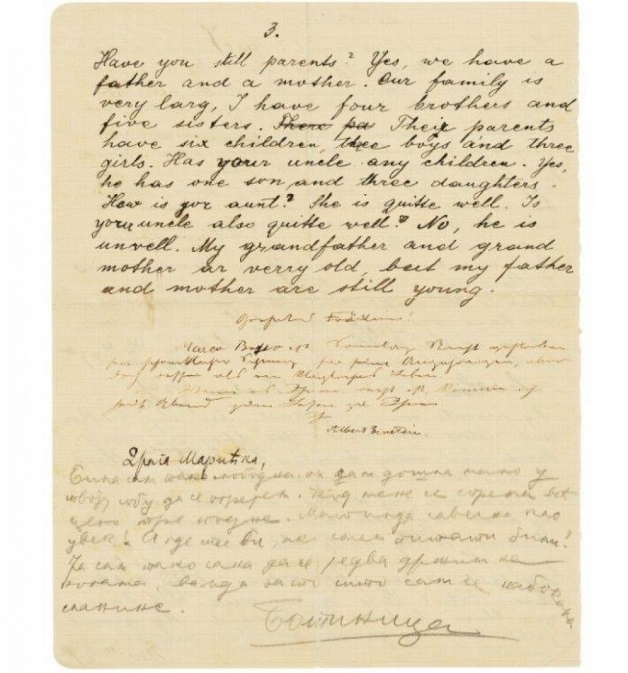 "Ljubavna pisma Ajnštajna" zbirka koja uključuje prepisku sa njegovom prvom suprugom Milevom, prodata je na aukciji u londonskoj aukcijskoj kući Kristi za 441.000 funti (536.000 evra, 562.000 dolara) u sredu.