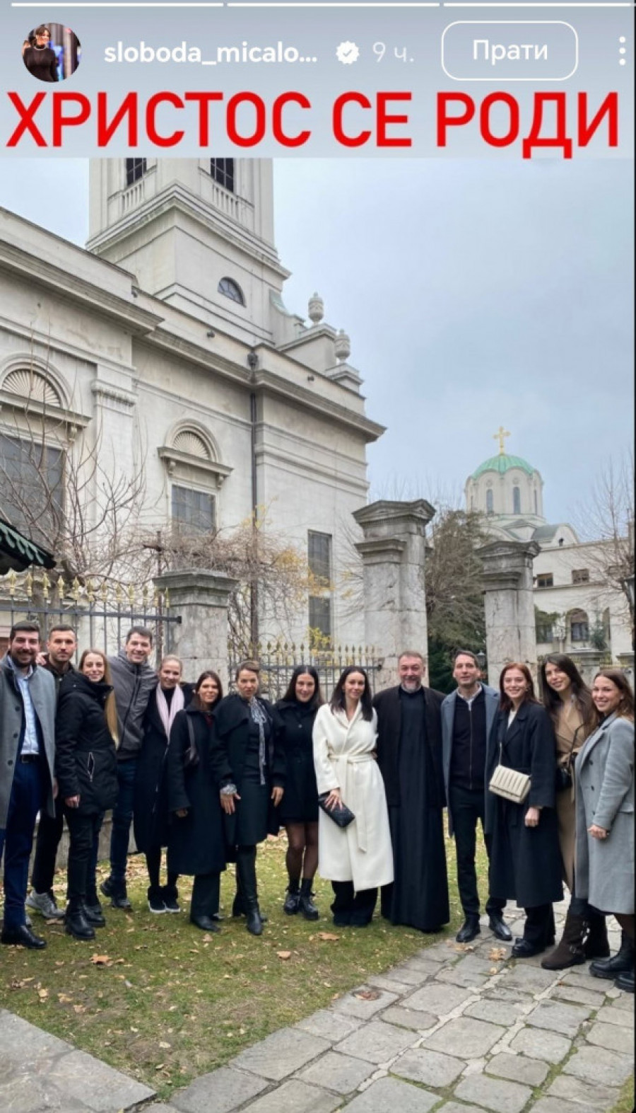 Glumci su zajedno obišli Sabornu crkvu u Beogradu, a Sloboda je na svom Instagram profilu objavila fotografiju sa sveštenikom uz reči: "Hristos se rodi".