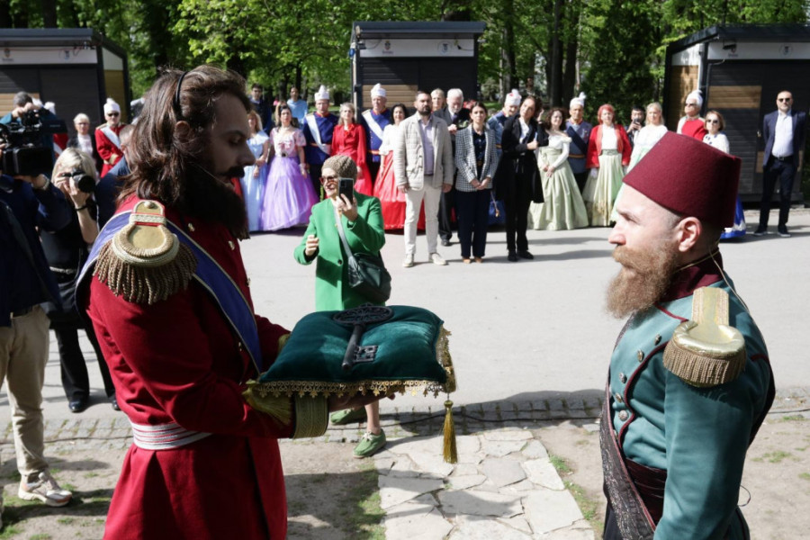 - Već 15 godina se ovde održava ta predaja ključeva grada Beograda, koja se odigrala 1867, kada su Turci napustili Beograd, a Rizah-paša predao ključeve knezu Mihailu Obrenoviću. Glumci pozorista Dadov su u nekih desetak minuta prikazali ovaj događaj, koji se odigrao upravo na ovom mestu. Iz kluba ljubitelja istorijskog plesa rekli su da je ovaj događaj glavni, a za sutra je najavljena i dodela nagrada grada Beograda za 2024. - rekao nam je Marko Čelebić, iz pozorišta Dadov.