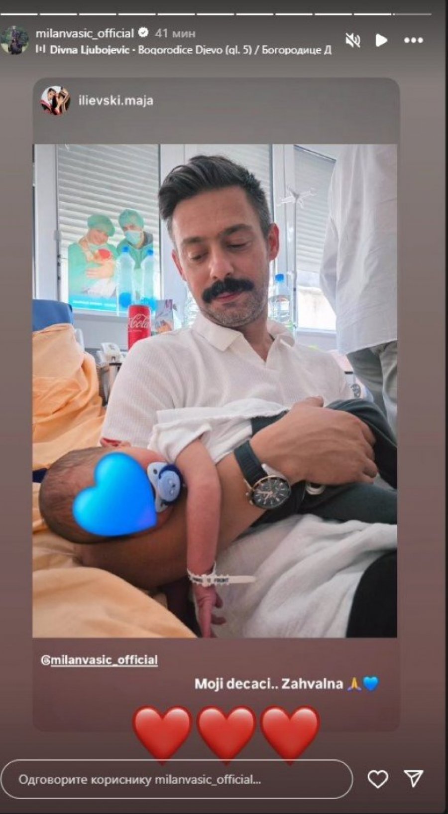 Danas je Milan posetio suprugu Maju i njihovu prinovu u porodilištu, a taj emotivan trenutak zabeležila je upravo Maja, koja je sa svojim pratiocima na društvenim mrežama podelila dirljivu fotografiju supruga kako nežno drži njihovog sina u naručju.