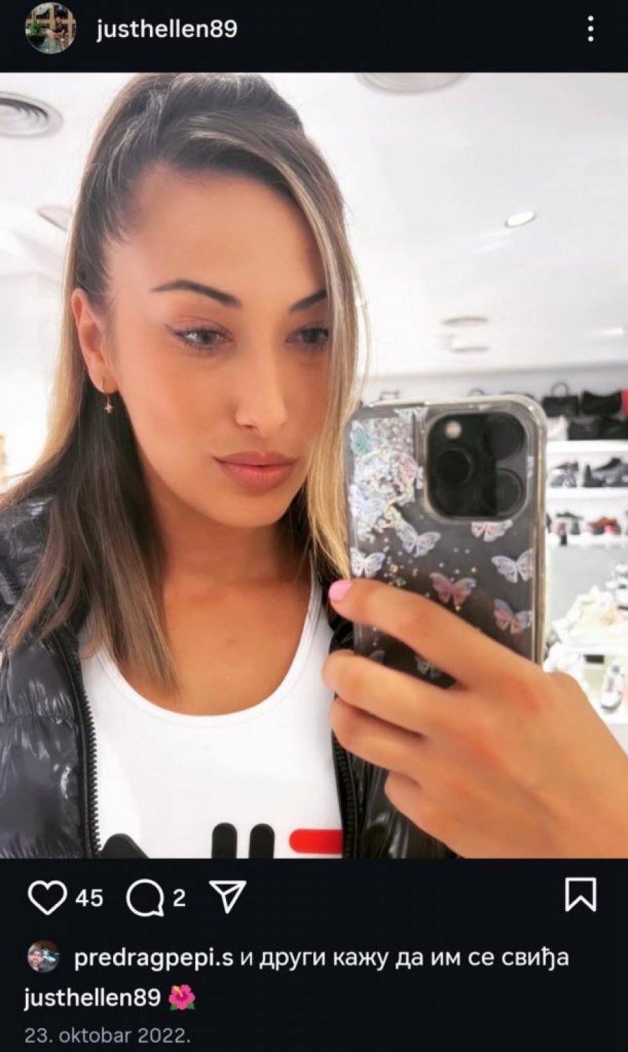 Jelena Gandosi, koja se na kratko pojavila pred kamerom, italijanska je glumica i trenutno živi i radi u Srbiji i u emotivnoj vezi je sa čuvenim "Pepijem".