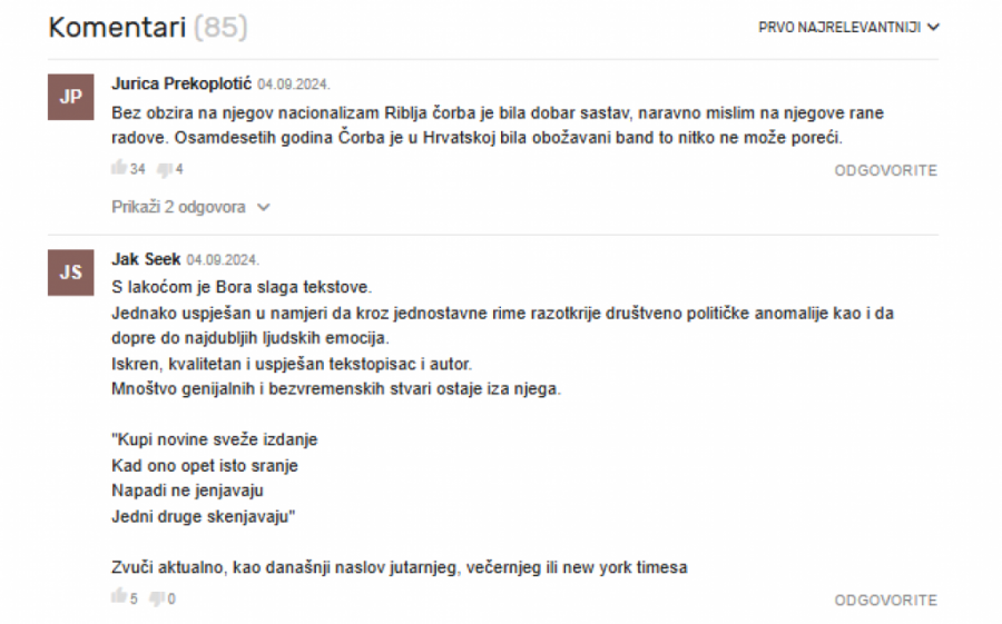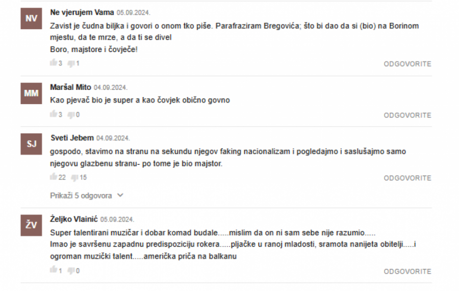 Tekst je izazvao buru i u Hrvatskoj, što možete videti u nastavku ovog teksta. Dok se nekolicina njih složila sa autorom, mnogo fanova ga je kritikovalo zbog ovog teksta i ostalo pri stavu da je Bora bio legenda.