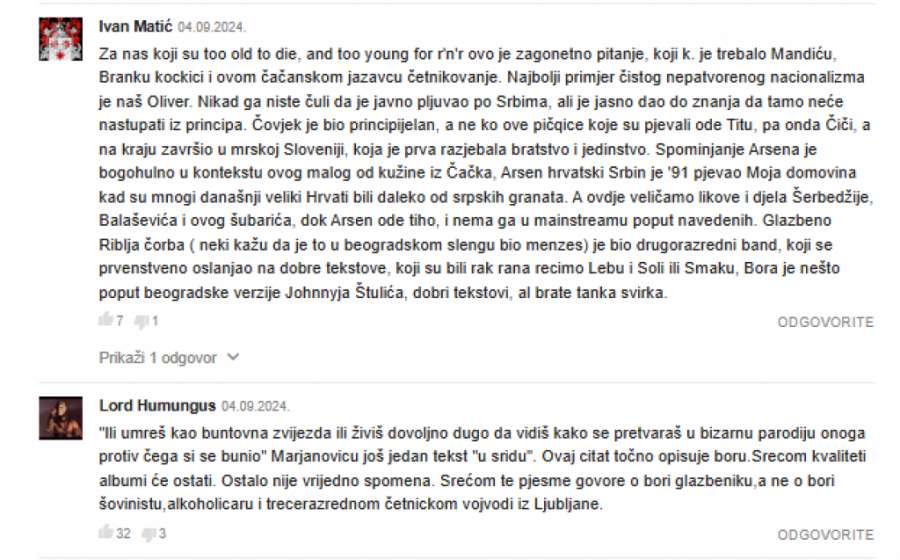 Iznosi i tvrdnje da je Bora možda "oduvek bio zagriženi srpski nacionalista", ali da to "publika nije primetila jer je izdavao kvalitetne albume".