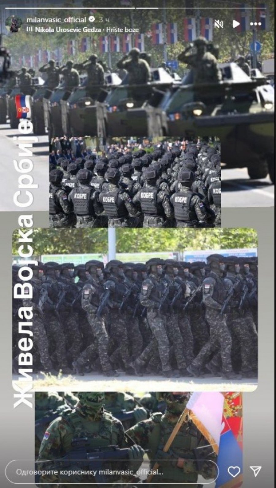 – Živela Vojska Srbije! – napisao je glumac, jasno stavivši do znanja koliko mu znači podrška institucijama koje čuvaju narod i državu.
