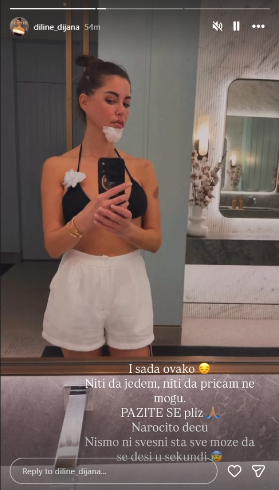 Dijana Radonjić, poznatija kao Dijana Dilajn, oglasila se na Instagramu nakon teške nezgode i uputila apel javnosti da budu oprezni, ističući koliko trenutak nepažnje može imati ozbiljne posledice. Zbog zadobijenih povreda, kako je navela, trenutno ne može ni da jede ni da govori.