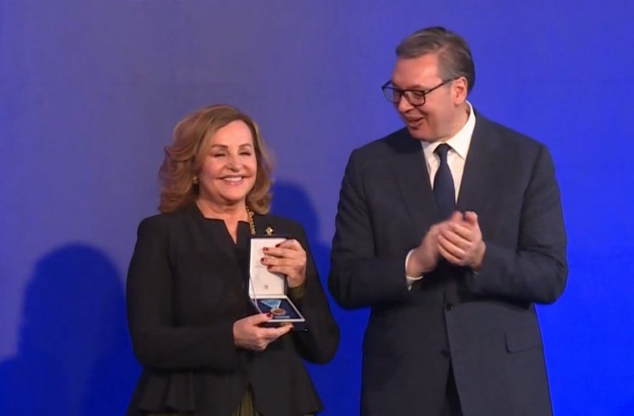 Predsednik Srbije Aleksandar Vučić uručuje danas u Palati Srbija odlikovanja zaslužnim pojedincima i institucijama povodom Sretenja - Dana državnosti Srbije. Predsednik je uručio odlikovanja estradnim umetnicama Snežani Đurišić i Ani Bekuti za izuzetne zasluge u oblasti muzike. Odlikovanje je dobio i Radoš Raša Pavlović.