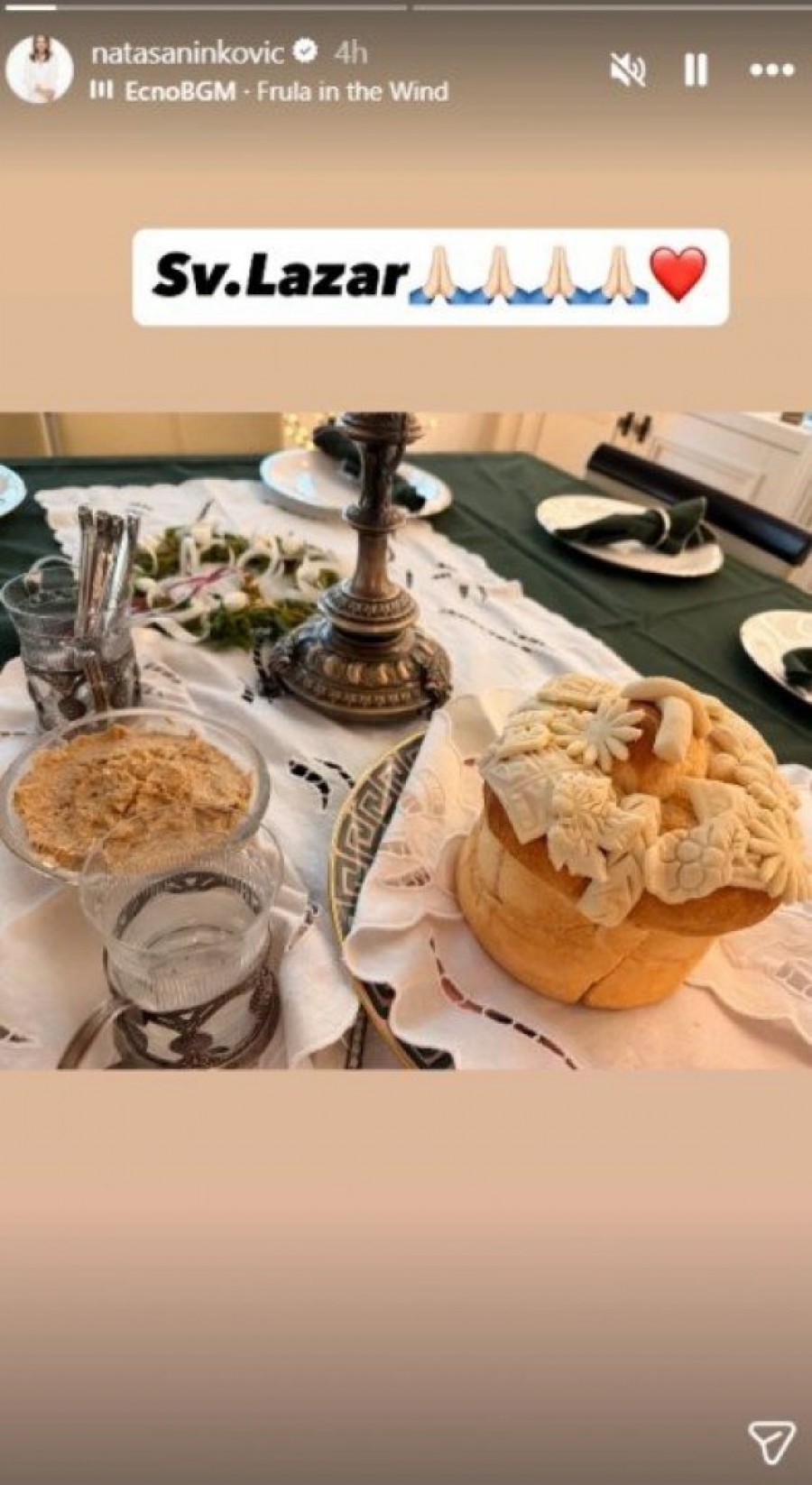 Nataša se više puta oglasila na društvenim mrežama, pokazujući kako izgleda proslava u njenom domu. Prvo je objavila fotografiju kolača i slavske sveće, zajedno sa pratećom dekoracijom, čime je svojim pratiocima dočarala atmosferu praznika. Zatim je glumica podelila i fotografiju svog sina, što je privuklo veliku pažnju javnosti. Na slici se vidi njen sin kako sedi u sivo-crnoj odevnoj kombinaciji, dok drži elektronsku cigaretu i čašu vina. Nataša je ovu fotografiju ispratila pesmom Bajage i Instruktora "Jedino se to zove ljubav", što jasno pokazuje koliko je ponosna i srećna zbog svog naslednika i porodičnog doma.