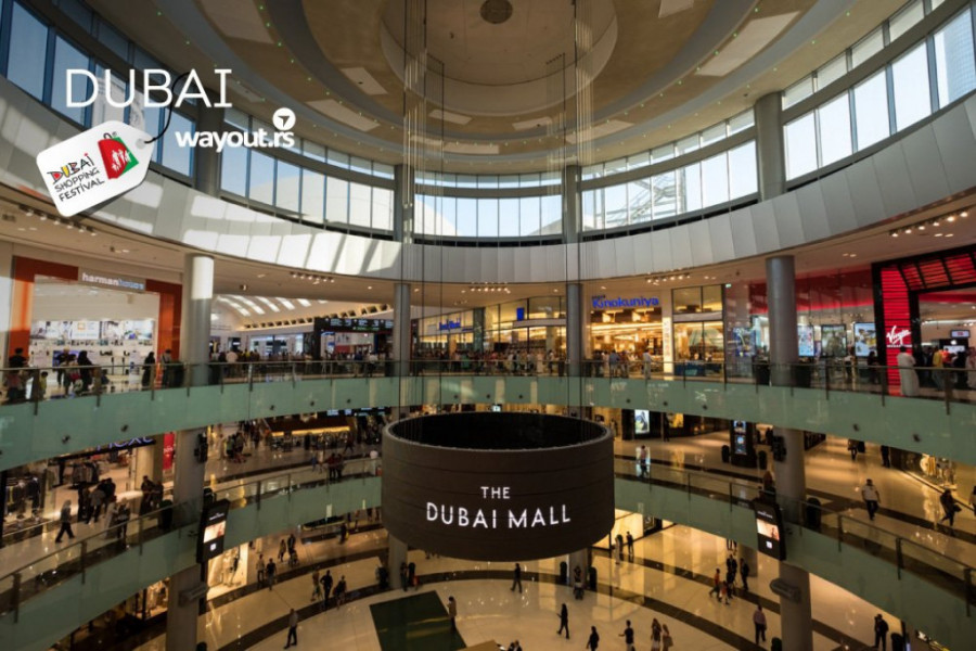 U Dubaiju nikad nije dosadno. Preko cele godine timovi iz različitih delova sveta su angažovani na organizaciji uzbudljivih zabava, koncerata, modnih revija i predstava na otvorenom. Ali, ništa ne privuče toliko turista kao doček Nove godine i šoping festival, koji počinje 26. decembra i traje do kraja januara. Tih mesec dana trajanja šoping festivala, se naziva mesec kupovine. U tom periodu popusti idu i do 90%, pa je lako izračunati da se za 30 evra može kupiti stvar koja košta 300 evra. Tržnih centara ima preko 70, a kako je Dubai poznat po grandioznim i jedinstvenim građevinama, tako se upravo tu nalazi i nosilac Ginisove titule najvećeg tržnog centra na svetu Dubai Mall, veličine približno 50 fudbalskih igrališta. Ima oko 1200 prodavnica, akvarijum sa preko 300 primeraka podvodnog sveta, uključujući ajkule i raže, "KidZania" - interaktivni tematski park za decu, klizalište, bioskope, restorane, fontane koje plešu, fitnes centar, pa čak i vodopad!