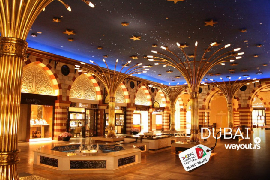 Foto: Promo fotoU vreme trajanja šoping festivala popusti idu i do 90%, pa je lako izračunati da se za 30 evra može kupiti stvar koja košta 300 evra. Tržnih centara ima preko 70, a kako je Dubai poznat po grandioznim i jedinstvenim građevinama, tako se upravo tu nalazi i nosilac Ginisove titule najvećeg tržnog centra na svetu Dubai Mall, veličine približno kao 50 fudbalskih igrališta. Ima oko 1200 prodavnica, akvarijum sa preko 300 različitih vrsta podvodnih životinja, uključujući ajkule i raže, klizalište, bioskope, restorane, fontane koje plešu, fitnes centar, pa čak i vodopad!