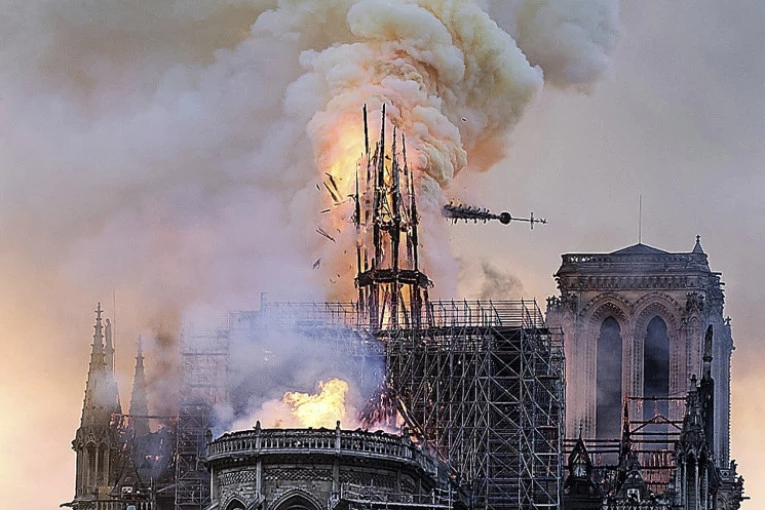 Foto: Tanjug/APSvet s užasom gledao kako gori katedrala stara 850 godina. Prognoze su sada već optimističnie, pošto se već govori o planovima za obnovu.