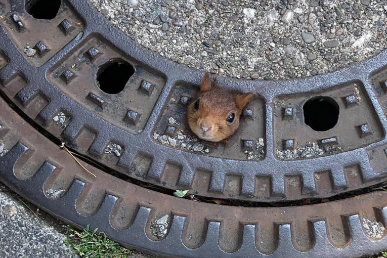 Vatrogasci, policajci i osoblje veterinarske klinike udružili su snage kako bi spasili crvenu vevericu čija se glava zaglavila u poklopcu šahta, u Dortmundu na zapadu Nemačke!