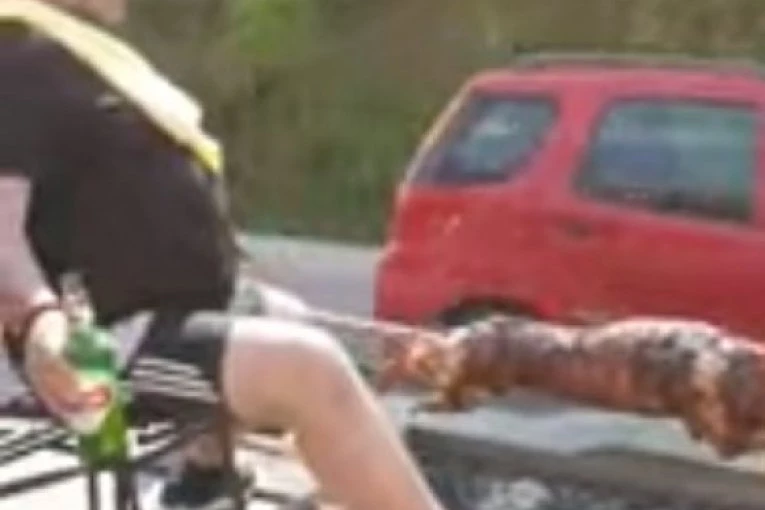 (VIDEO) PRAVI BALKANCI: Vozili se gradom i u prikolici pekli svinju na ražnju