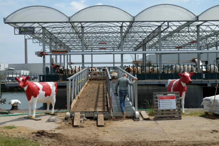 U jednom delu frekventne holandske luke Roterdam postavljena je nova plutajuća farma koja, prema rečima organizatora, prikazuje održivi način proizvodnje mleka u mestima gde ga ljudi najviše koriste - urbanim svetskim gradovima.