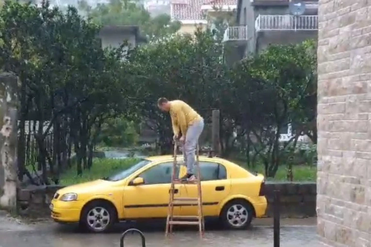 Foto: Printskrin: Facebook/Milenko Mico BigovicObjavljen je snimak na kojem se vidi kako Crnogorac pokušava da stigne do svog automobila, pored kojeg bukvalno teče reka vode.