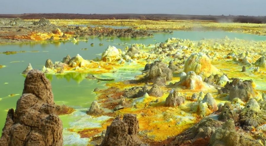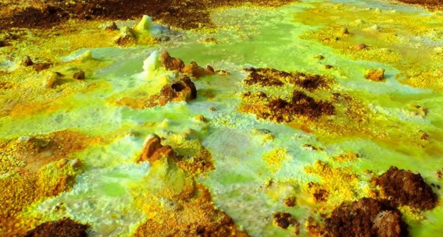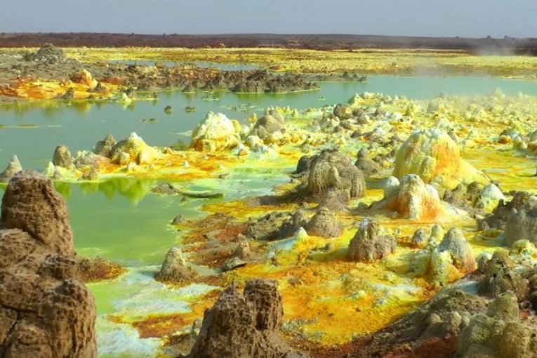 Foto: youtube.com/Amazing Places on Our PlanetTi vreli izvori se smatraju najtoplijim naseljenim delom sveta, ali su veoma jedinstveni ne samo zbog velike vrućine. Čitav predeo ispunjen je malim jezerima i izvorima izuzetno kisele i slane vode koja zajedno sa okolnim tlom proizvodi predivne palete boja - zelene, žute, narandžaste i braon. Iako na prvi pogled može da deluje intrigantno i lepo na neki vanzemaljski način, čitavo područje je veoma negostoljubivo i vazduh toksičan, sve to zahvaljujuci vulkanu koji leži ispod egzoticnog reljefa. Zbog ekstremnih uslova, područje je oduvek fasciniralo naučnike, a jedna od ekspedicija otišla je 2016. godine da vidi da li život može da se razvija tu.