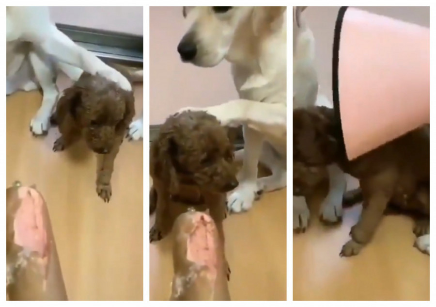 Na videu objavljenom na Tviteru može se videti kako tri psa momentalno cinkare četvrtog, nakon šro im je, verovatno vlasnik, pokazao načetu viršlu.