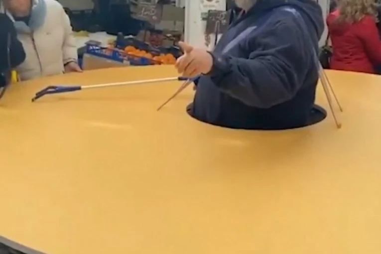 Naime, kako bi sprečio da mu ljudi prilaze, skrojio je krug od kartona i navukao ga na sebe dok je bio u kupovini, pa je pomalo ličio na filmsku verziju vanzemaljca u letećem tanjiru. Kada ga je autor video snimka, koji je postao pravi hit na društvenim mrežama, pitao zašto je to uradio, kratko je odgovorio.